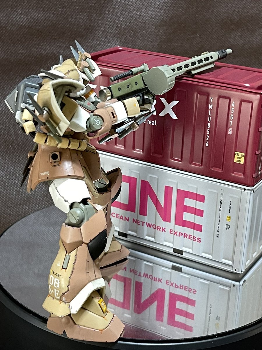 【中近距離戦闘型サンドイフリート】ジャイアンガトリング砲を使用する為に 鹵獲したザクⅡF2の腕を 換装した機体です、盾を 延長しています❣️ (クナイは2本しかないです😅) #余計なアドバイスは迷惑と気付きましょう #イフリートシュナイド #ガンプラ好きな人と繋がりたい