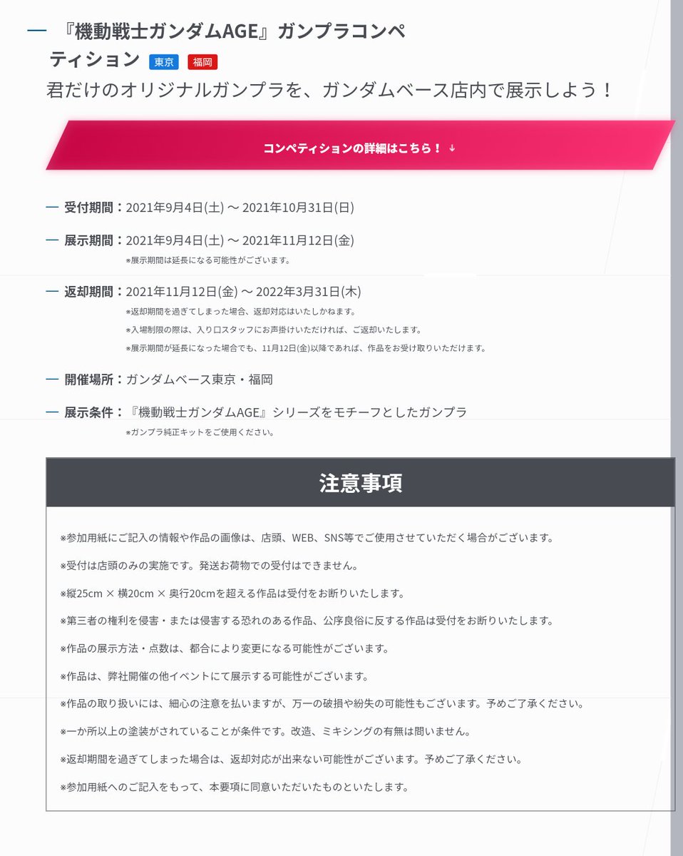 >『機動戦士ガンダムAGE』ガンプラコンペティション (画像1) ↑ということで、完成(画像2~4/本体のみ撮影) ネムイ(´・ωゞ) "オマケ"もなんとかできたけど、写真撮ってる暇無かったので、現地で設置してから撮ろう思う。 #ガンダムベース東京 #ガンプラ #g_age #イメージングビルダーズ twitter.com/gotoutakesi00/…