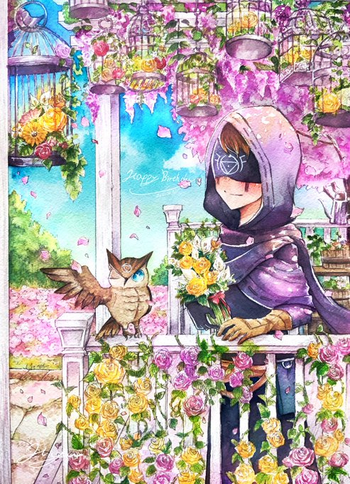 『華やかな時を』 貴方の目に溢れるほどの美しい花々が映りますように。 イライお誕生日おめでとう。 #イライ誕生日 #イライお誕生日おめでとう #イライ・クラーク誕生祭2021 #イライさんクラーク生誕祭2021 #第五人格イラスト