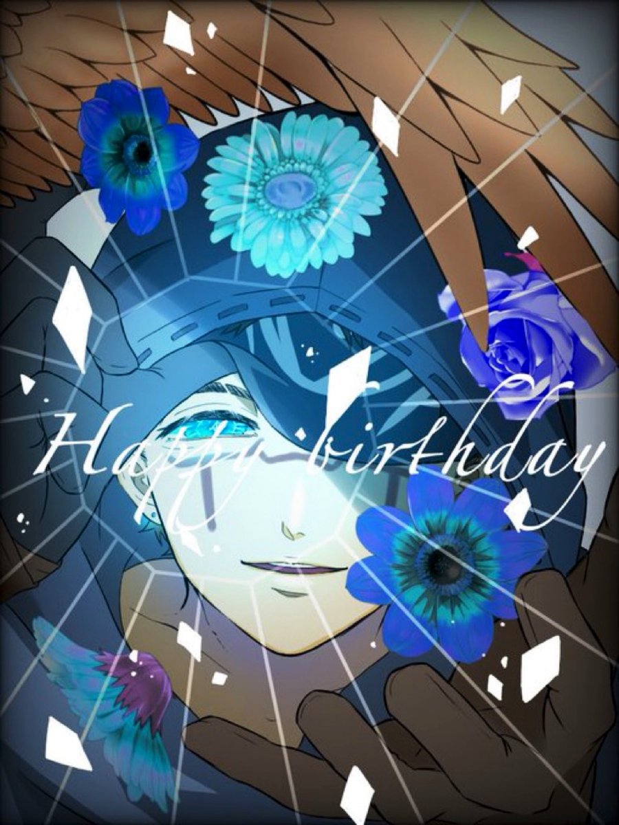 相棒からの贈り物。 誕生日は瞳と同じ色の花を贈ろう。 #IdentityV #第五人格 #第五キャラの日 #イライ・クラーク誕生日2021 #占い師 #第五人格イラスト #identityVイラスト
