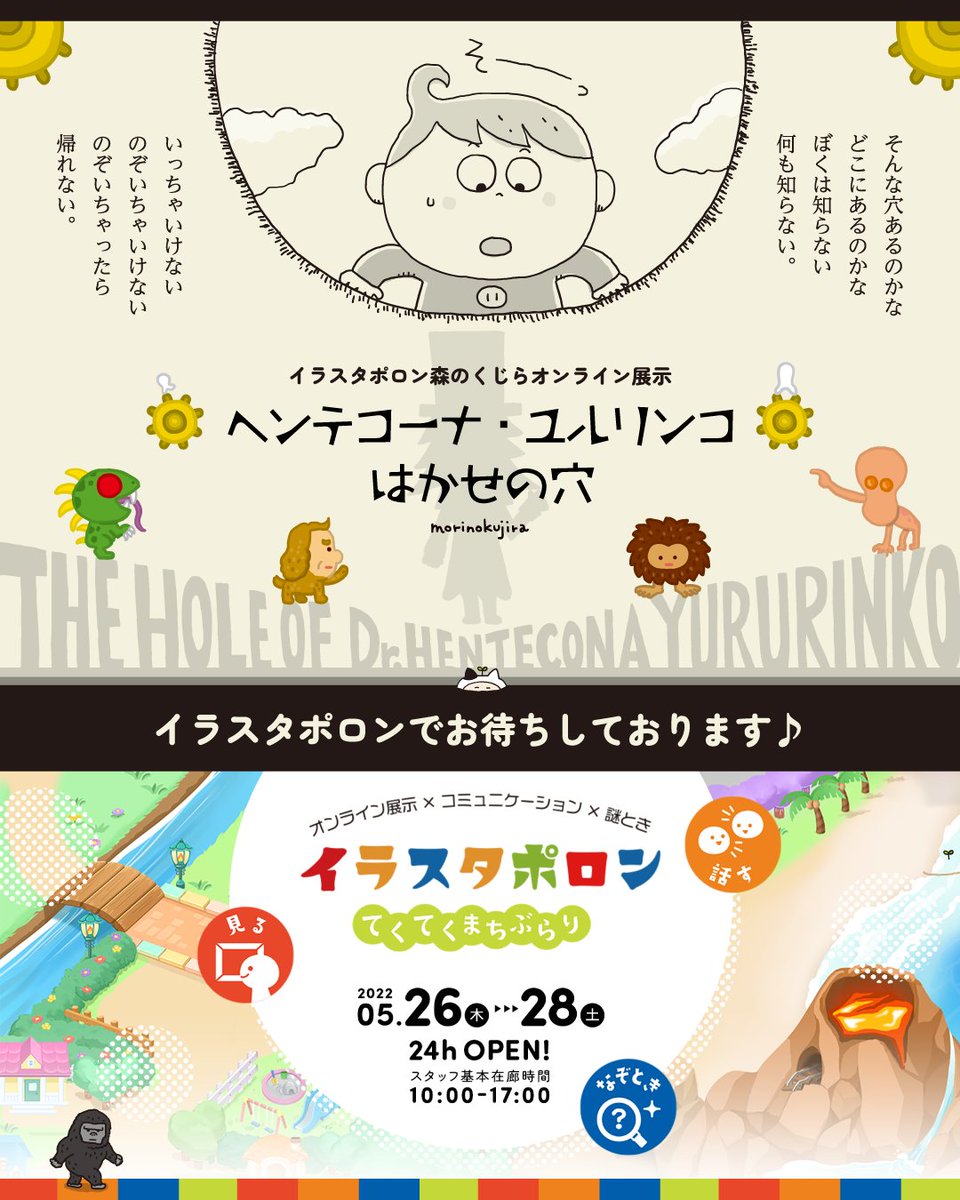 さて自分の作品の方もあらためて。 #イラスタポロン では『ヘンテコーナ・ユルリンコはかせの穴』というけったいな世界を作りました。イラスタポロンのすみにある大きな穴。のぞいちゃだめだけど、のぞいてみてください♪ illustapollon.amebaownd.com #イラスト #イラストレーター #illust #Illustrator