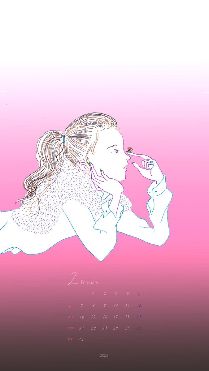 2月の携帯カレンダーです🐞 『てんとう虫とポニテ女子』 #携帯カレンダー #イラストカレンダー #線画 #イラスト #アナログ手描き #ペン画 #クリスタ #女の子イラスト #ファッションイラスト #イラスト好きな人と繋がりたい #illustration #drawing #art