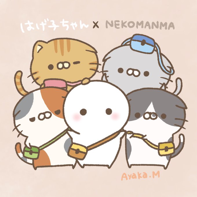 #イラストコラボ企画 8人目は夢レモンさん🍋(@yumeLemon39 )のはげ子ちゃんとコラボさせていただきました( 'ω' )!4匹もお揃いの鞄を持ってはげ子ちゃんの真似をしております( ´・‿・`)🐈コラボしていただきありがとうございました( *˙ω˙*)و💐 #NEKOMANMA #イラスト #ゆるいイラスト