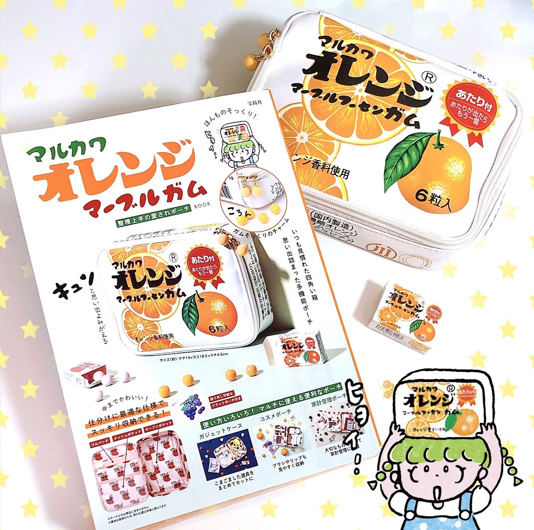 本日宝島社から発売の「マルカワオレンジマーブルガム」整理上手の愛されポーチBOOKで、イラストとタイトル文字描かせていただきました🧡 ポーチのチャームがガムみたいになっていたり、内側もかわいいです!ぜひ書店などでチェックしてみてください😊 #イラストレーターりかちゃん