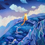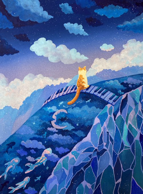 夜の物語 あの青い空の下 長い間待ってました 何が釣れるんだろう #illustration #illustrationart #artwork #art #cat #picture #イラスト #絵描き #絵画 #絵描きさんと繋がりたい #絵本 #イラストレーター