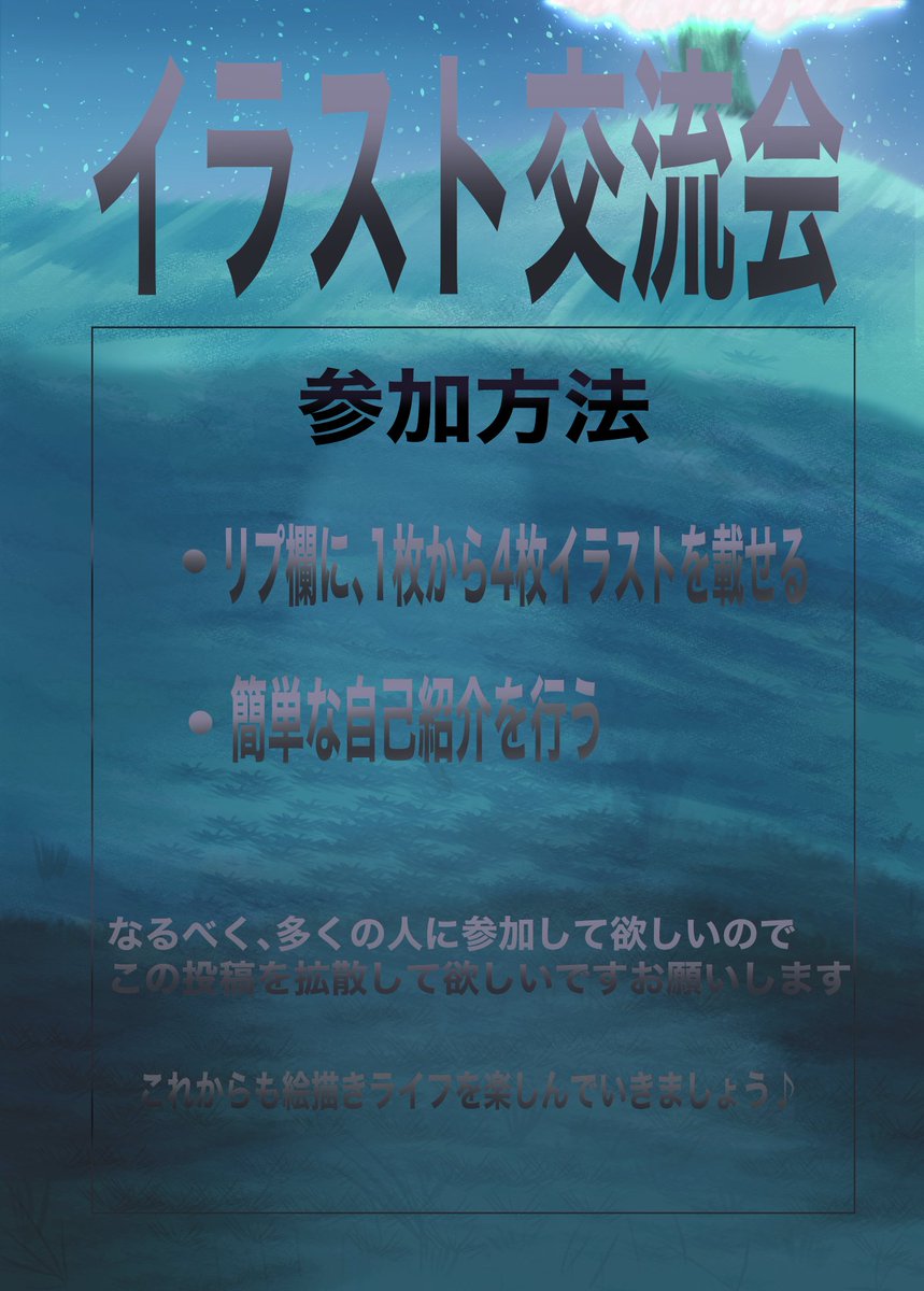 #絵描きさん交流会 #イラスト交流会 #絵描きさんと繋がりたい #絵描きさんフォロバ100 自分でもやりたくなったので、作った!! みなさまのイラスト見せてください!まだ見ぬ出会いにときめきたい!お待ちしてます〜! 健全イラストに限り、できる限りRTさせていただきますね!😘