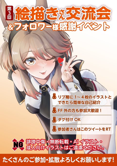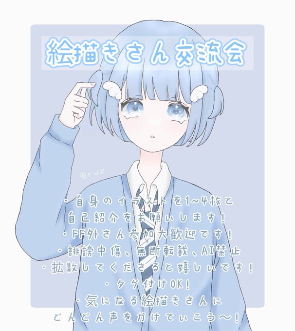 皆様へ日頃の感謝を込めて.... 第3回 #絵描きさん交流会 を開催します! FF外からも大歓迎🎉 FFさんは全力で応援いたします! ぜひivukiをフォローしてくれると嬉しいです!🥳 ✨皆様に素敵な出会いがありますように✨ 【開催期間】5/28(日) 23:59まで #絵描きさんと繋がりたい #イラスト交流会