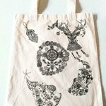 クリスマスなオリジナルトートバッグ🎄 ど真ん中に位置する浮遊するリースを 左上と右下にいるサンタなお化けが睨んでいる 右上はツリーなりかけトナカイ、 左下はツリーなハウス #クリスマス #Christmas #イラスト #イラスト好きな人と繫がりたい #イラスト好きと繋がりたい #お絵かき
