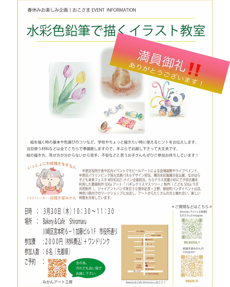 【#イラスト教室🍊】 2/11(土)#こどもハッピーラボ(#相模原・古淵ハウジングステージ) 『#水彩色鉛筆でクマちゃんを描いてみよう』 ご予約お待ちしております🙂 3/30(木) #お子さまイラスト教室(#川崎区 Bakery & Cafe shiromaru) 昨日からご予約開始で即🈵となり! #追加日、#大人参加企画中です!