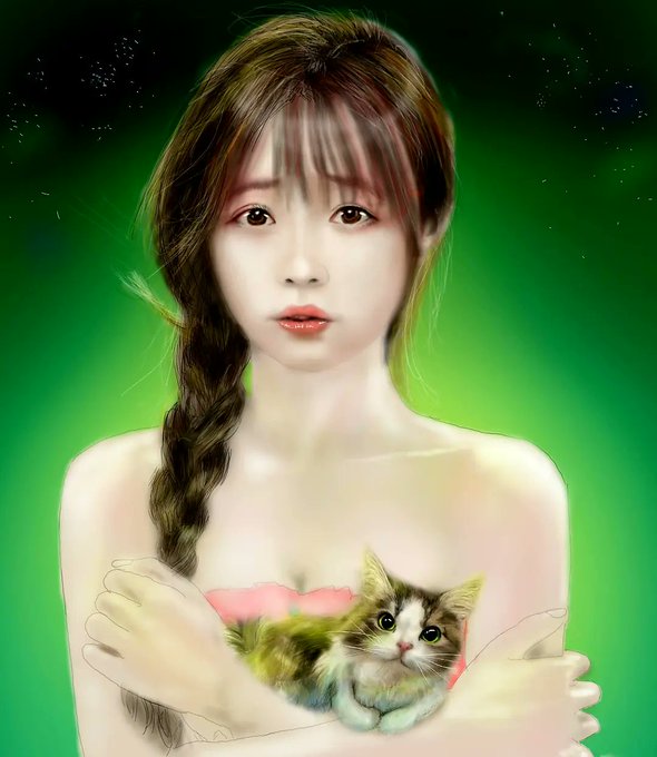 今日のお絵描き、タイトルは「抱っこ」です。 #somali #マンチカン #今日のお絵描き #originalcharacter #munchkin #グリザイユ画法 #イラスト #イラスト画力向上委員会 #猫 #cats #illustration #artists #drawing #CatsOfTwitter
