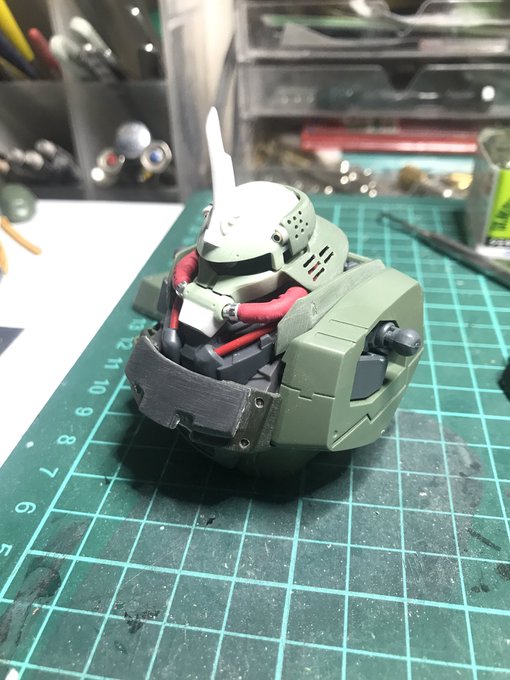 1/100 #イラスト立体化 計画 @tosashin1028 さんの #デザートザク 制作再開😊 ふくらはぎ片面だけで1日かかってますね😅 #模型サークルSGR #静岡ホビーショー2022