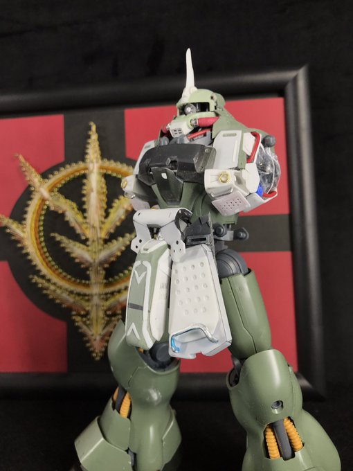 1/100 #イラスト立体化 計画 @tosashin1028 さんの #デザートザク やっと片足整形完了😅 複雑なのでアレンジという名の誤魔化しに逃げました😆 #模型サークルSGR #静岡ホビーショー2022