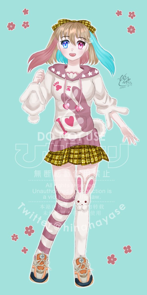 IRIAM用立ち絵。 🐰をモチーフにした女の子💗 スカートのタータンチェックは 手描きで頑張ったよ😊 あと靴が大変だった〜💦 #IRIAM立ち絵 #イリアム #絵柄が好みって人にフォローされたい #オリジナルイラスト #illustration #イラスト #創作イラスト