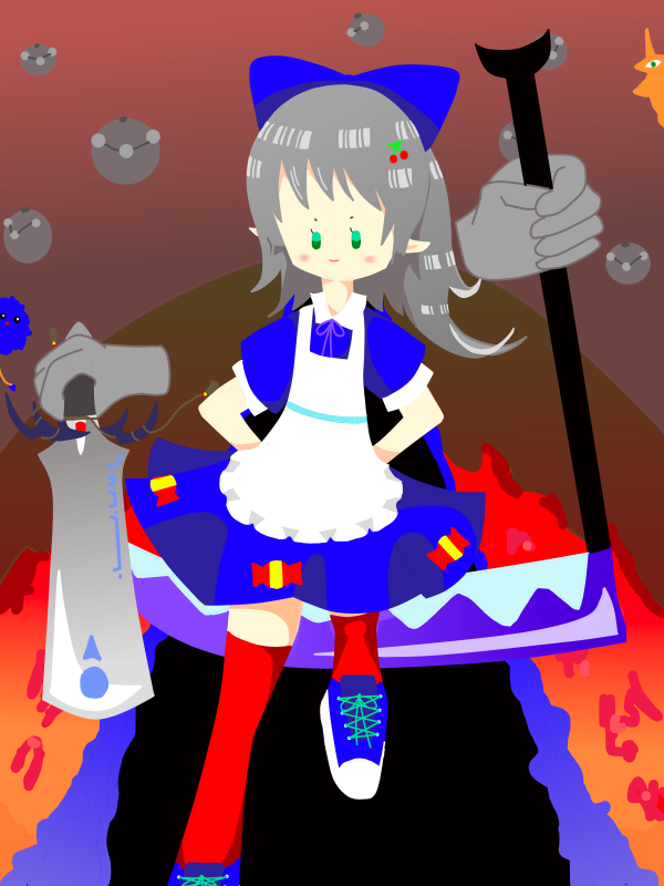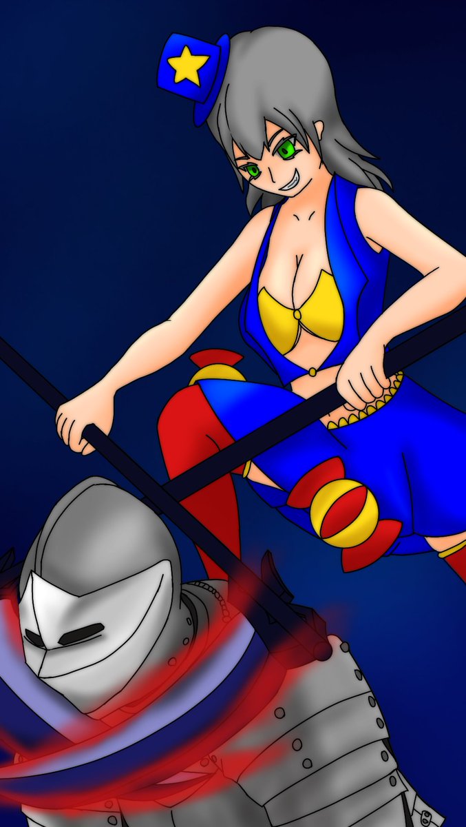 #イリス様祭り2021 #ざくアクアート ざくアクがアクションゲームだったら背後に回り込んで首を刈りながら蹴り飛ばす、そんな感じの必殺技持ってそうだなと思って描きました 一応の元ネタはダークソウル3の黒い炎のフリーデさんです