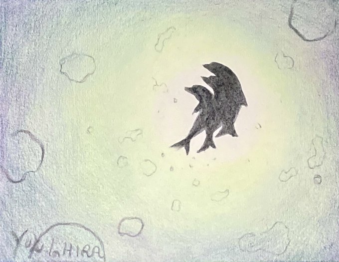 「重なって」 オリンピックでの とあるフォト作品に魅せられて、 真似してみる。 okusyadia.wixsite.com/yasuko-hirai/b… #アートワーク #絵描きを目指す人へ贈る言葉 #悩みがちな人への応援歌 #本日の絵画 #イルカの絵 #逆光の絵 #重なって #グラデーション #色鉛筆画