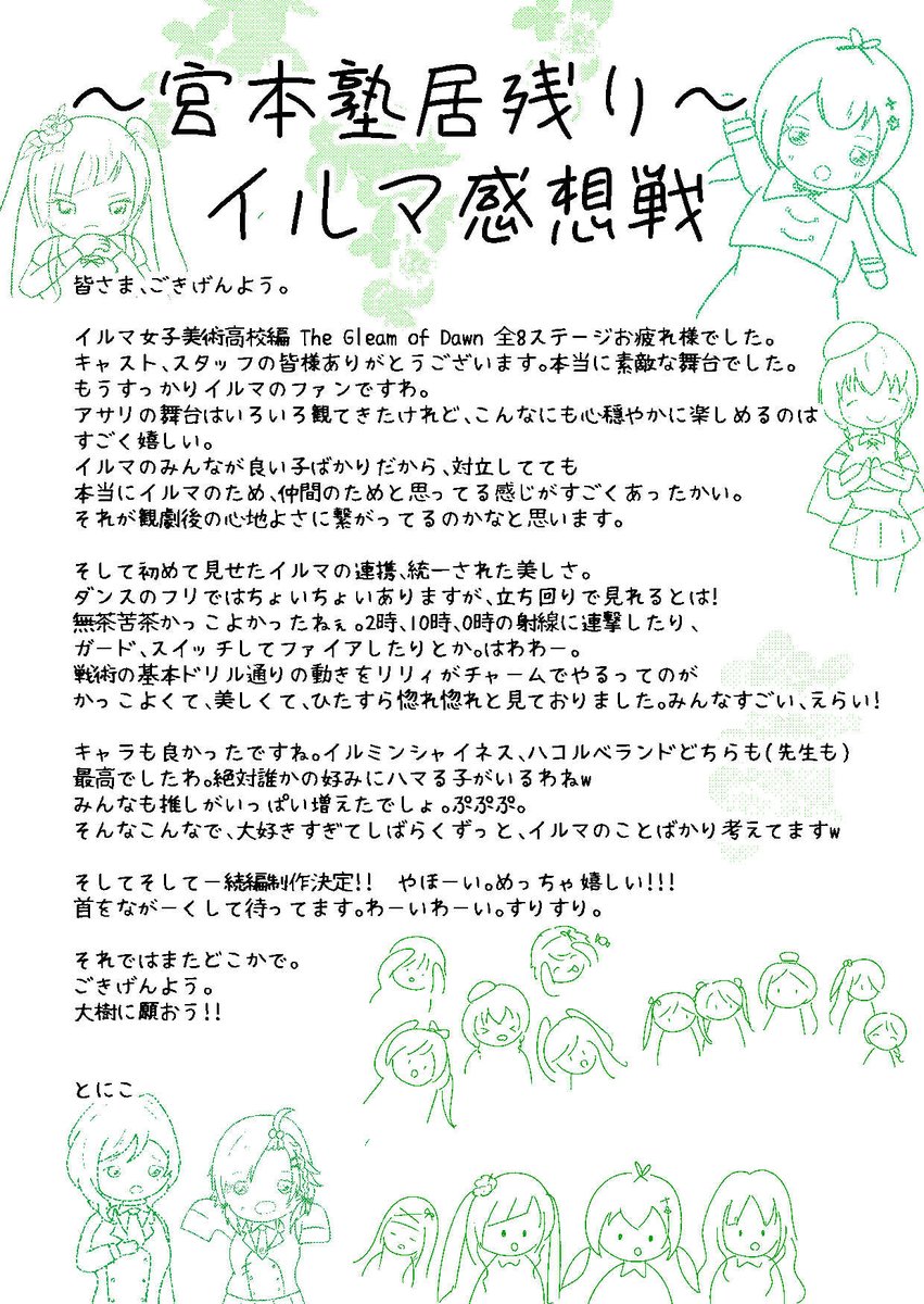 イルマ舞台のキャストさん、スタッフさん最高の舞台をありがとうございました! そして続編決定おめでとうございます! 大樹に願った甲斐がありました!こちらも全力で応援します! #イルマTGD #アサルトリリィドール部
