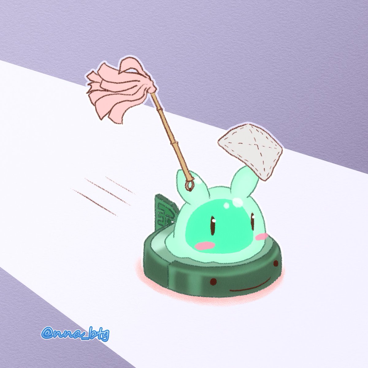 お掃除ロボットくんと一緒にアリスギア5周年ケーキを届けに行くゲルちゃん 年末のお掃除イラストの時描いたペアでまた描いて見ました♪ #アリスギア #アリスギアお絵かき #バトガ #バトルガールハイスクール #イロウス