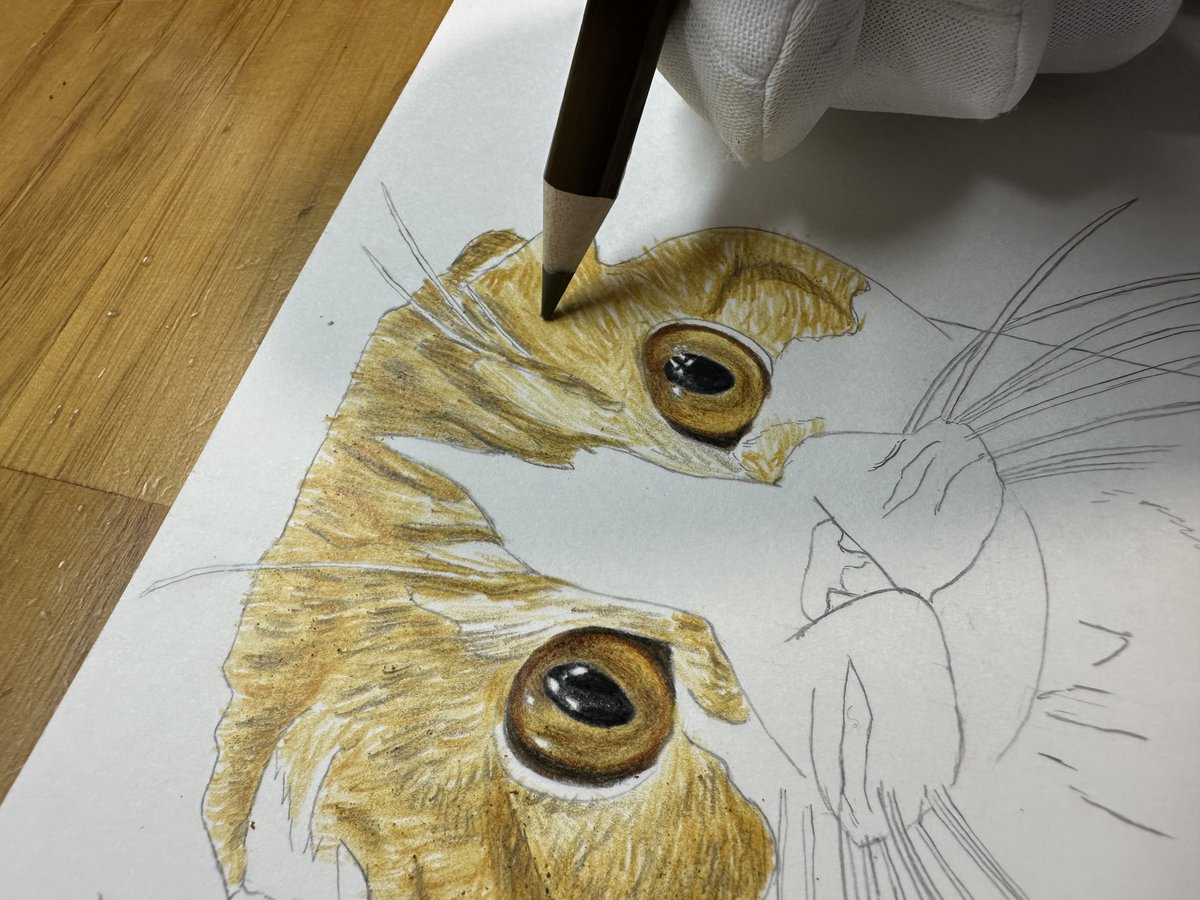 明日日曜午後3時からインスタライブを行います! みやかわが #色鉛筆画上達ドリル動物編 からスコティッシュフォールドを描きます 下記URLよりインスタグラムのアカウントをフォローしてご視聴ください🐱 instagram.com/irodoreal_cp #色鉛筆画 #イロドリアル配信