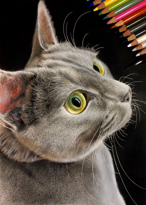 出来ました~❗リヒト先生のロシアンブルー🐈⬛1回目の配信を参考にして描きました💨バニシング楽しかったです☺️#色鉛筆画 #イロドリアル #色鉛筆画上達ドリル動物編 #絵描きさんと繋がりたい #イラスト好きさんと繋がりたい #みんなで楽しむTwitter展覧会