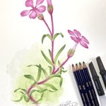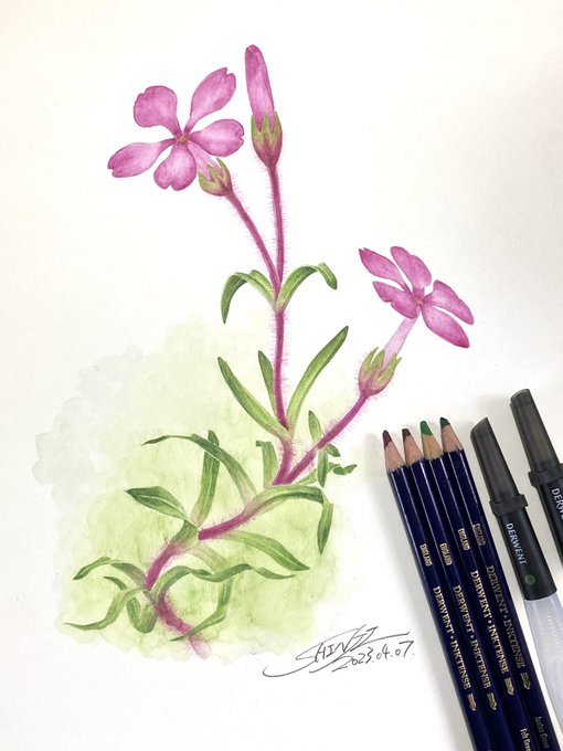 #ダーウェント の水彩色鉛筆インクテンスで"シバザクラ"を描いてみました。 以前に普通の色鉛筆で描いた作品なのですが、塗り方に違いがあるかもう一度描いてみました。溶けた後を予測したり水筆の水量も計算してとか色鉛筆や水彩でもない別ジャンルな感じで楽しいです🎨 #インクテンスで春を感じて