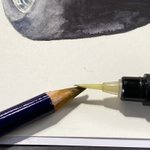 色が弾かれたことで溶かさず普通に塗るという事に気が付きました…当たり前のことですが溶かす事に頭がいっぱいでした💧 二刀流が出来るのが水彩色鉛筆のメリットでしたね。 「溶かすだけが水彩色鉛筆じゃない」 #インクテンス100色缶発売 #イラスト