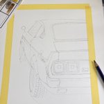 フロントガラス塗ります charcoal grey2100で内装シルエットを塗り水で溶かす 乾いたら同じ色で全体を薄く重ね塗りして溶かす 濃い色に薄い色は塗り易い 薄い色(明るい色)に濃い色は弾かれて色ムラになる #インクテンス100色缶発売 #イラスト