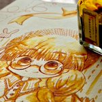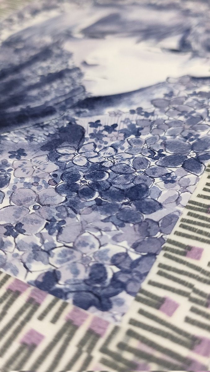 #インクミュージアム #インクイラスト合同誌 インクと仲良くできてません… 当初の予定よりゴテゴテ(ヽ´ω`) もっと淡い感じに従ったんですが、薄めたインクが紫に寄ったため青み濃くするために全体的に濃く……