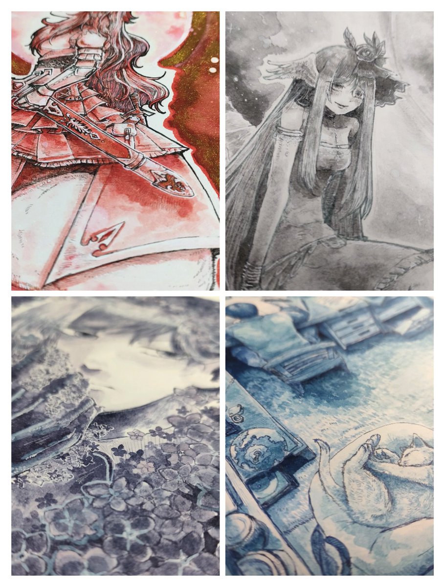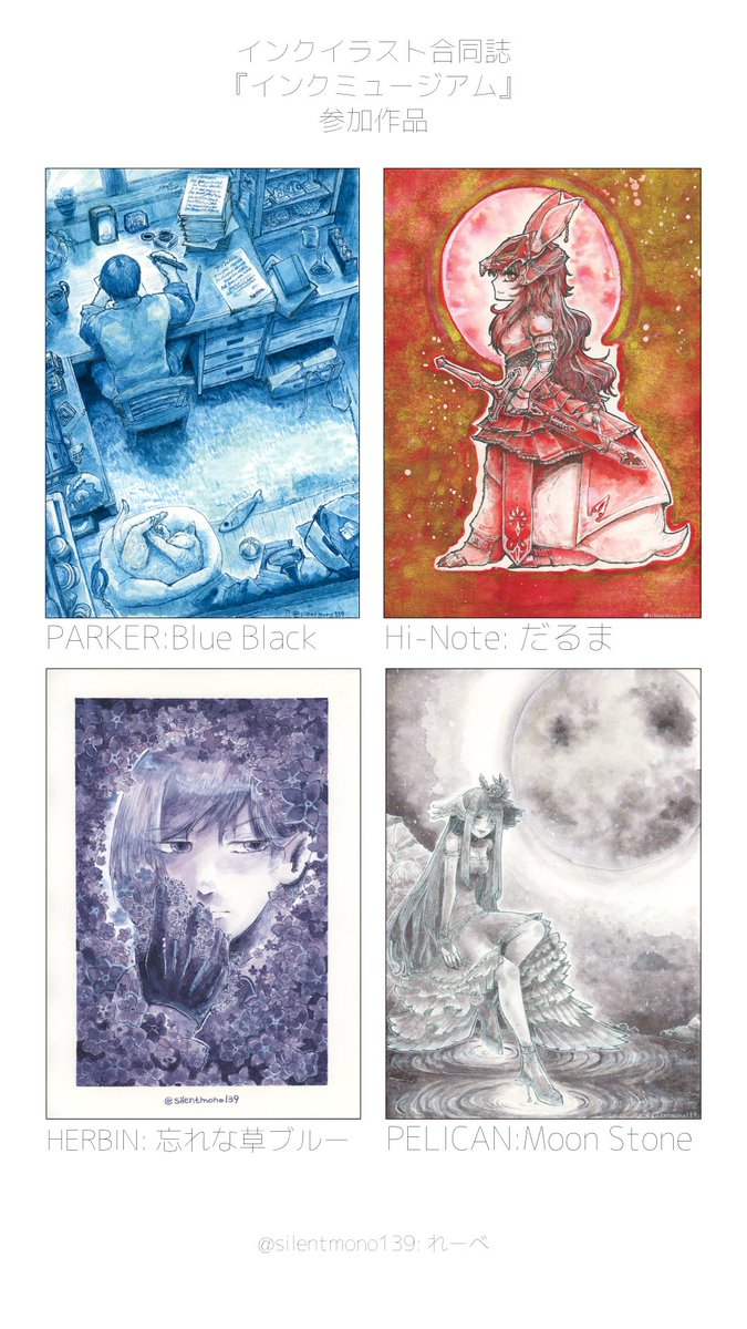 #インク・ミュージアム #インクイラスト合同誌 100点の原画を展示しているグループ展は本日18時まで! 万年筆インクに関するあれこれが体験できる試筆コーナーも大人気ですので、ぜひ、遊びにきてくださいね!✨✨✨ れーべの展示4作品、公開します! twitter.com/TorusHole_F/st…