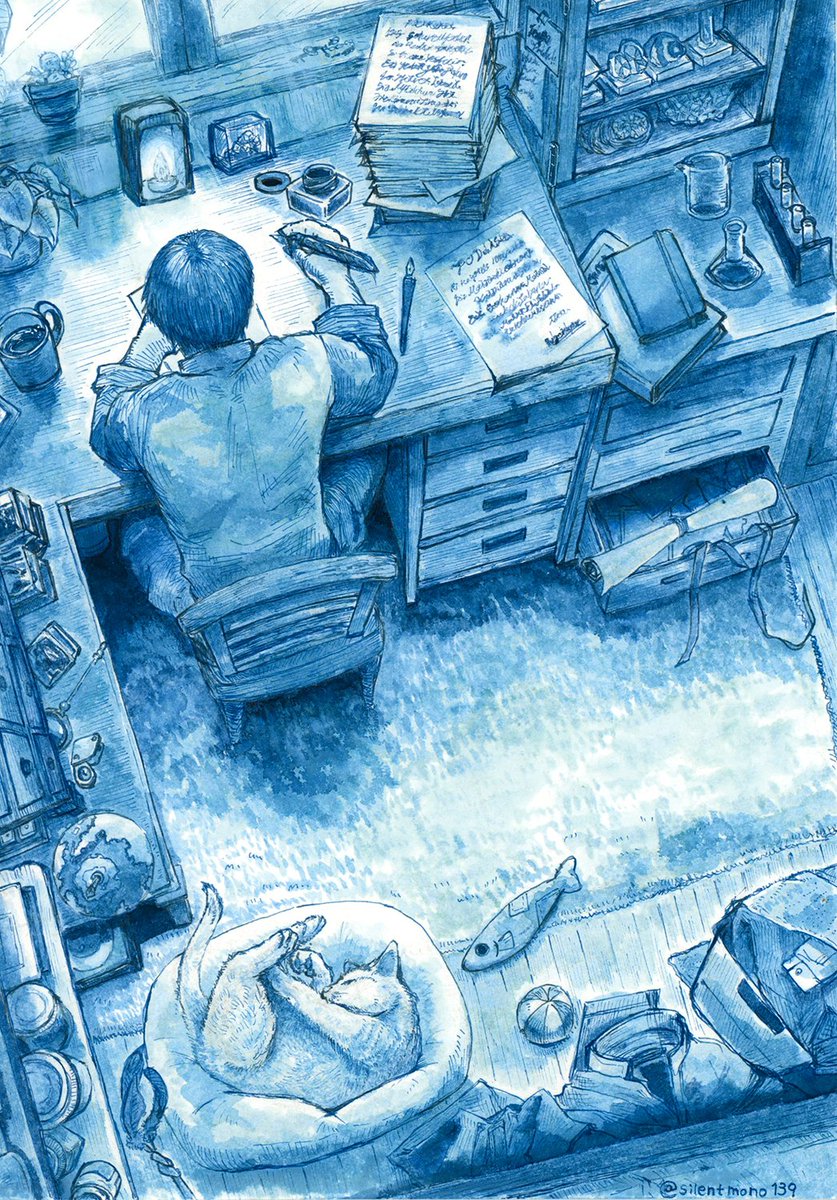 【あと9日!】 #インクイラスト合同誌 「#インク・ミュージアム」の発刊カウントダウン。 本日は「青色インク特集」です!青色のインクは一番人気で、本の中には様々な「青」が集まりました。きっと好きな青色が見つかると思います✨ #インク沼 #fountainpenink