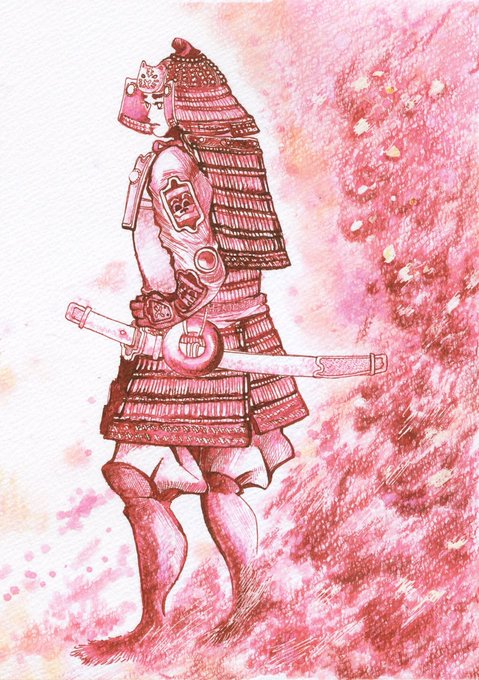 「にゃんこ大鎧」 #インク・ミュージアム 参加作品 サンフラワーM画用紙に夜焚 夜焚といえば武士…大鎧が好き…というミーハーな気持ちを込めて描きました。 (鎌倉殿ロスの頃です) ドリログでマスキングインクが使えるということでチャレンジしています。(足元の白斜線や煙の白抜きなど)