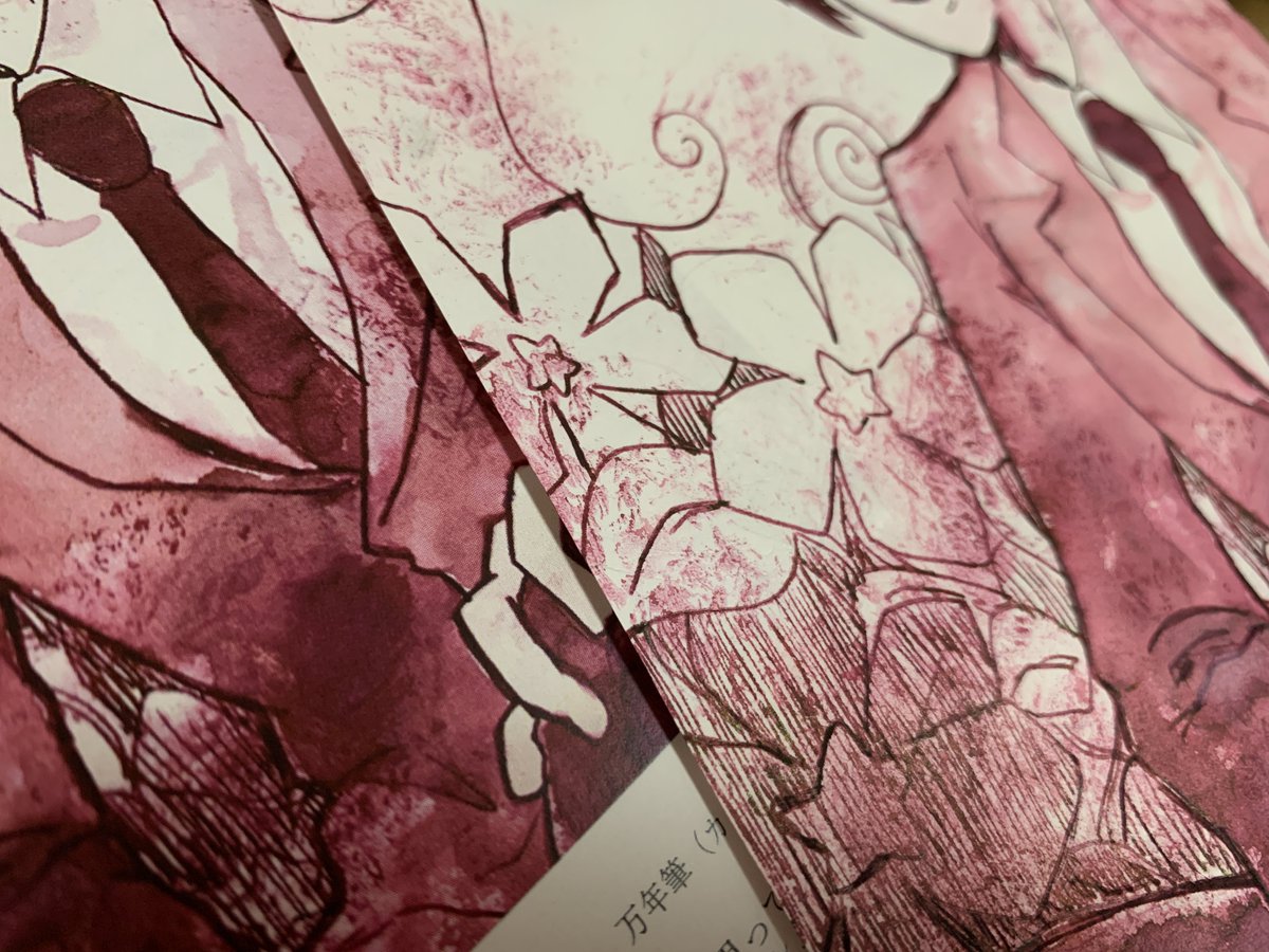 #Twitterでもインク・ミュージアム展 #インク・ミュージアム 使用インク:プラチナ萬年筆/万年筆用超微粒子顔料インク/本格ローズレッド文字用 万年筆のプロシオン(M)で描きました 展示に来てくださった皆様、ありがとうございました!