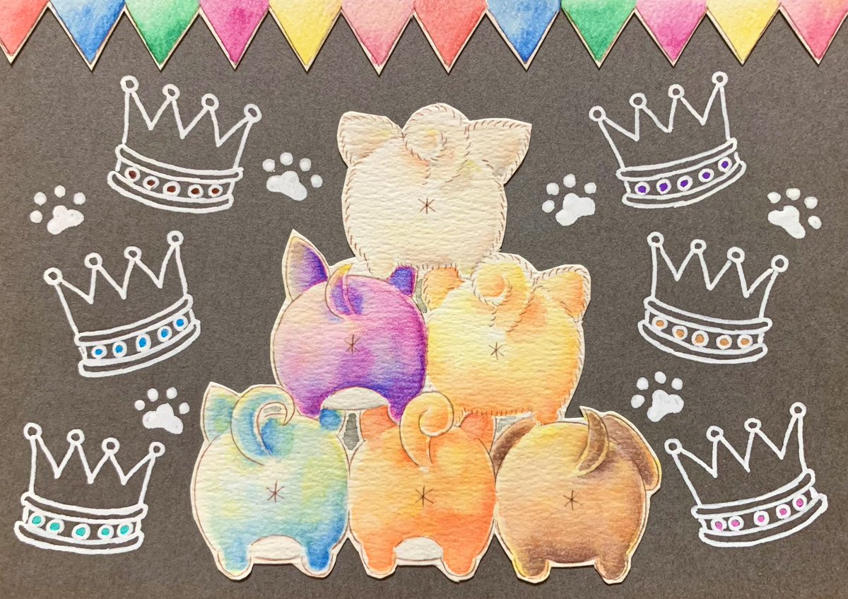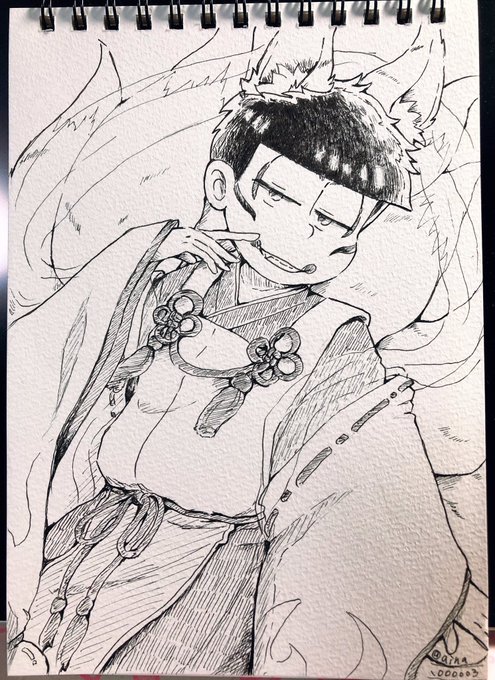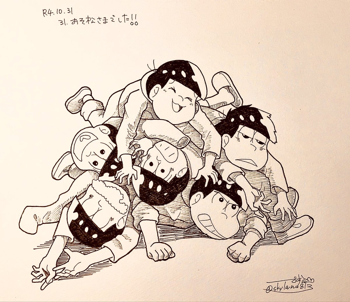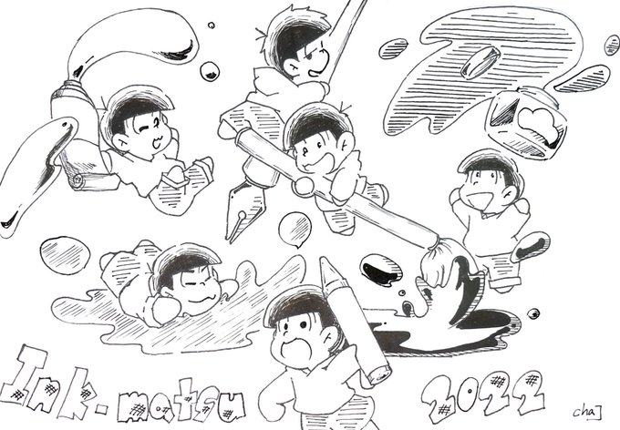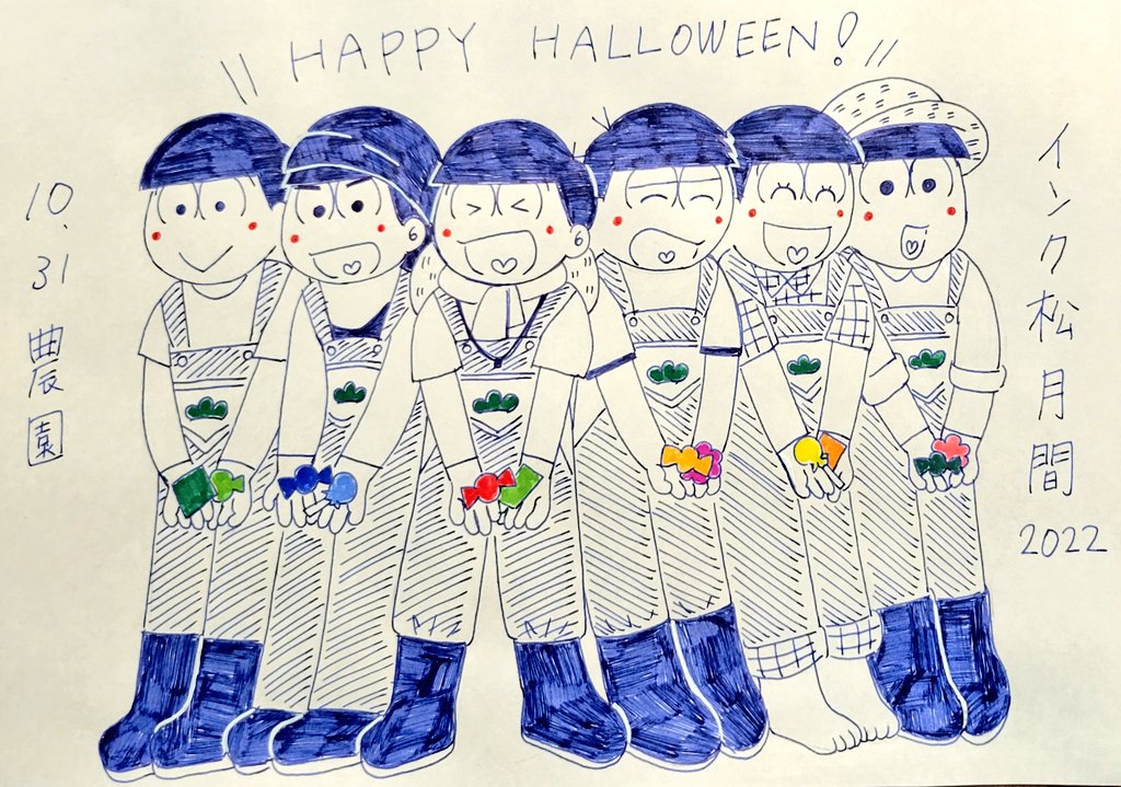 #へそウォ6年間ありがとう #へそウォいつもありがとう #インク松月間2022 自主催以外のタグを忘れましたね!!😹 ギリギリいくない😇 ✏️下描/アナログ+デジタル 🖋ペン/コピック、100均ミリペン、シグノ(金・白) 🎨着彩/100均アルコールマーカー 修正液モリモリなんで線画はコピーしてます