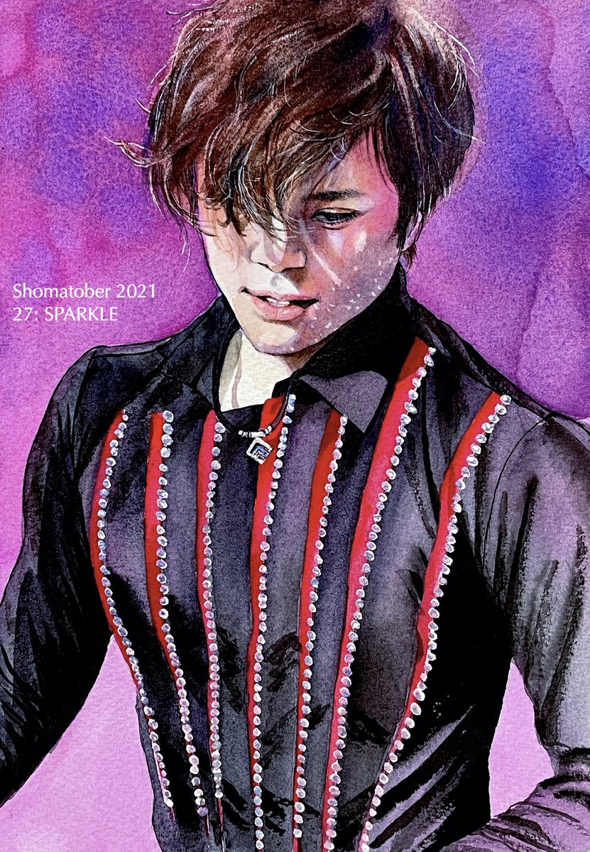 27 : SPARKLE まだやってるショマトーバー😆 あと11あります🖋 マイペースに描きます🧚♀️✨ ⠀⠀⠀⠀ #shomauno #宇野昌磨 #weloveyoushoma #goodluckshoma #watercolor #水彩 #インク⠀ #shomatober2021⠀ ⠀ 📷 : @yo_photo_ (Thank you, Yoshiko✨)