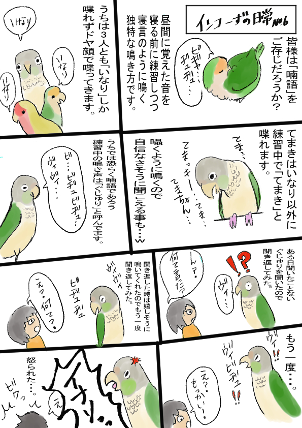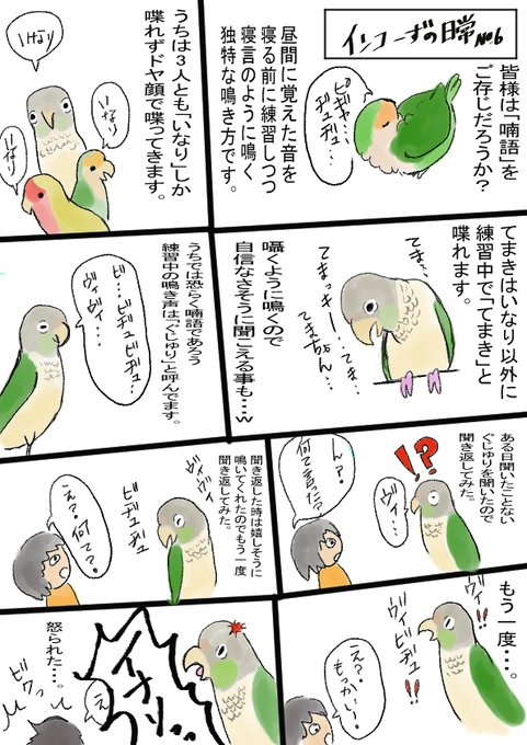 お喋りの練習を邪魔したあげくに何度も聞き返すしつこい飼い主に、てまきも得意の言葉で返り討ちにした話('_') 過去の漫画はこちらから⇒naopippi.com/innkononitizyo… #インコ #インコ大好き #漫画が読めるハッシュタグ #ブログ