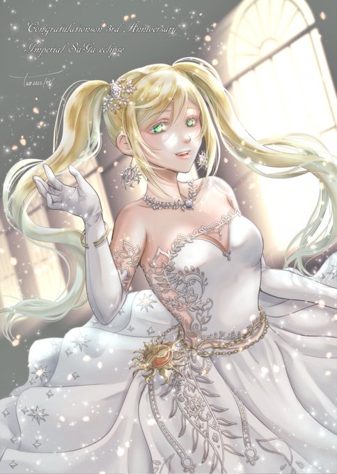 SQUARE ENIX様「インペリアルサガ エクリプス」にて 描かせていただきました、今年のバレンタイン衣装のサラになります。 髪と黄色のドレス描くの楽しかった☺️ そしてロマサガ3 お誕生日おめでとうございます! eclipse.imperialsaga.jp #インサガEC #ロマサガ3