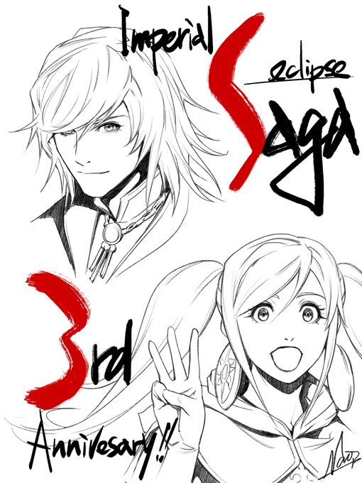 #祝インサガシリーズ8周年 おめでとうございます。いつも楽しませていただいております…! 当日遅刻ですがベリアス皇家きょうだいにてお祝いですー! アデル (羽庭てすら .@023_2525) ミルリク (ナカツ .@naka_t_su) 第二報は本日正午を予定です…! #インサガEC #サガ絵