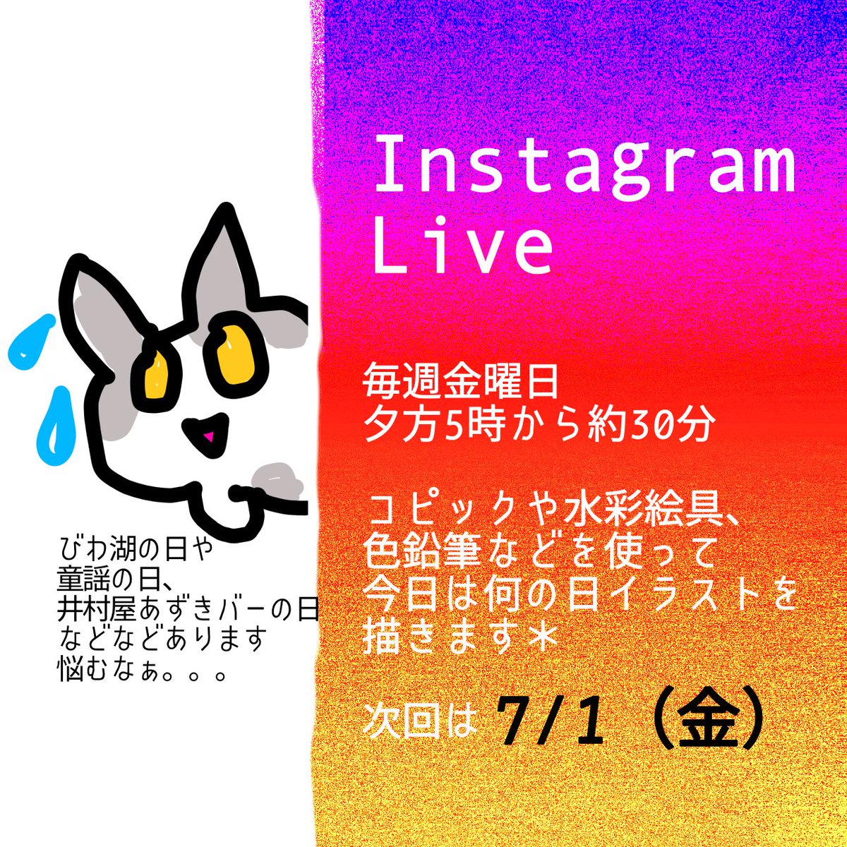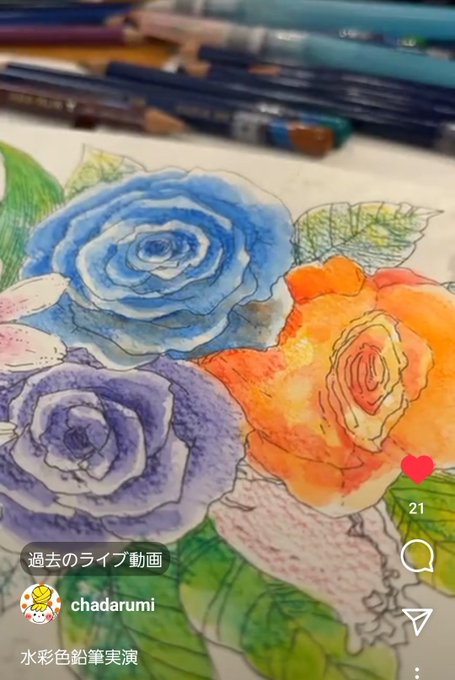 久々にインスタライブしました〜 気がつけば1時間越えてた笑 完成は難しそうだったので、とりあえず終わりました。 ペン入れから色塗りまで。 #インスタライブ #イラスト #固形水彩絵具 #ウインザーアンドニュートン #コットマン水彩紙 #ありがとうございました