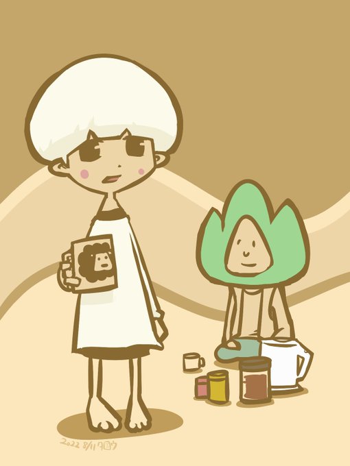 8/11 山さんの作る甘々インスタントコーヒーが美味しいと感動するマッシュルームちゃん #今日は何の日 #山の日 #インスタントコーヒーの日 #マッシュルームの日 #イラスト #illustration #一日一絵