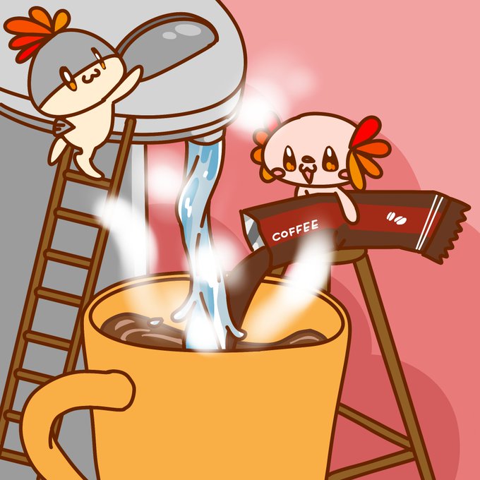 手軽で美味しい、ほっと一息☕️ サラサラサラ・・・コポポポポ・・・ #インスタントコーヒーの日 #おは戦40811am #企業公式相互フォロー祭り #イラスト #りどるん #あすりん