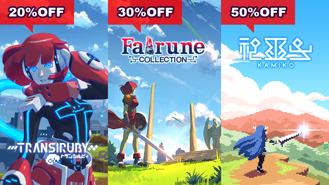 Steamウィンターセール!『トランシルビィ』『ピコンティア』『フェアルーンコレクション』『神巫女 -カミコ-』がセール中です!よろしくお願いします!! #インディーゲーム #ドット絵 #indiegame #pixelart ■セール中のゲーム一覧 store.steampowered.com/search/?develo…