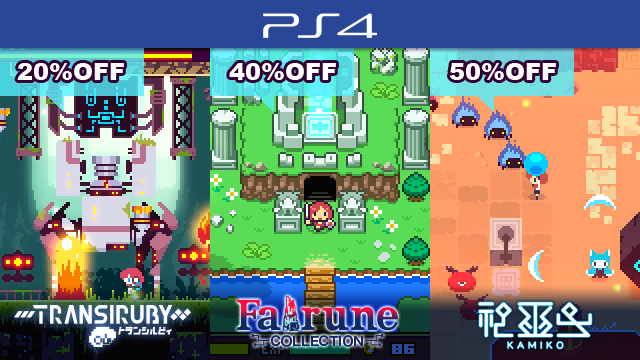 PS4版『トランシルビィ』『フェアルーンコレクション』『神巫女 -カミコ-』がセール中です!よろしくお願いします!! #インディーゲーム #ドット絵 #indiegame #pixelart ◆トランシルビィ store.playstation.com/ja-jp/product/… ◆フェアルーン store.playstation.com/ja-jp/product/… ◆カミコ store.playstation.com/ja-jp/product/…