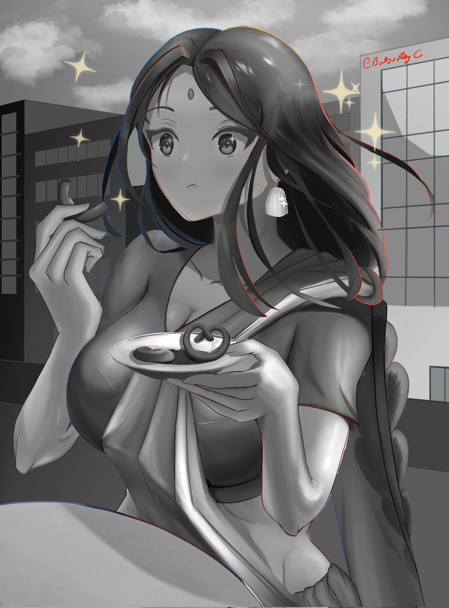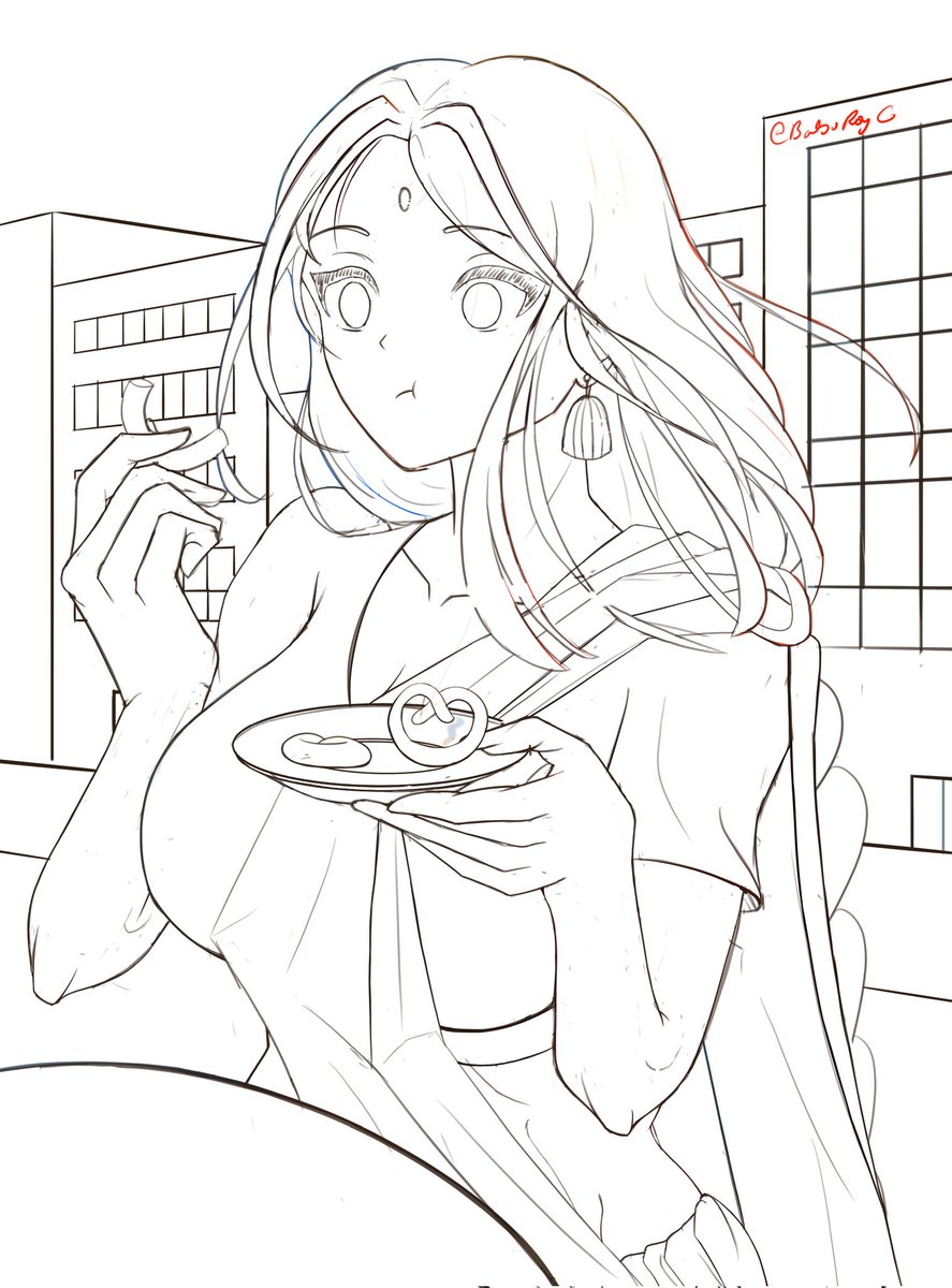 Hello everyone, this is my latest drawing, I hope you'll be fine with it. Topic: Indian girl eating Galebi. #イラスト #pixiv #CLIPSTUDIO #絵柄が好みって人にフォローされたい #いいねした人全員フォロー #ボンキュッボン #絵を彩度100にすると超派手 #絵 #アニメ好きと繋がりたい #インド