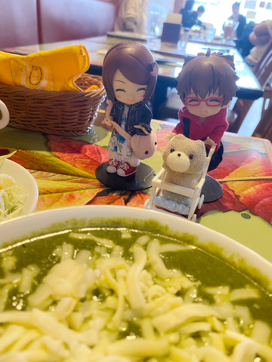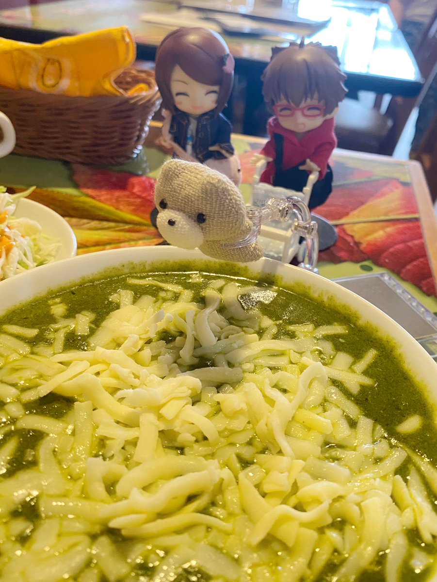 グリちゃん、お昼はインドカレーですよ☺️ なんだかハマって来まくってます😆💦 今日はほうれん草とチーズのカレー☺️ グリちゃん、たくさんあるからゆっくり食べるんですよ☺️ #キューポッシュ #子ぐまのグリちゃん #インドカレー