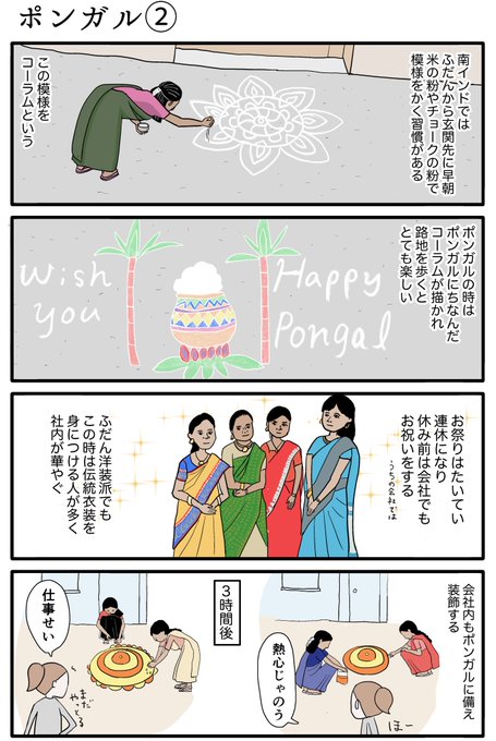 ポンガル(南インドの収穫祭)が始まりますね。 続きます(1 of 4) 今年はお祝い控えめなのかなぁ。 ともあれHappy Pongal! #インド #漫画が読めるハッシュタグ #インド