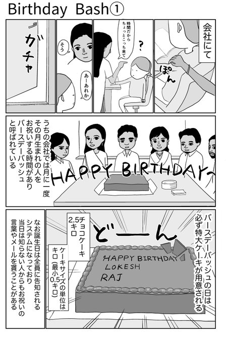Birthday Bash/誕生日のお祝いについて (1/3) 明日に続きます。 なお、社内で公表されるのは誕生月と日のみ、年は非公開です (と信じています)。 #インド #漫画が読めるハッシュタグ #漫画が読めるハッシュタグ