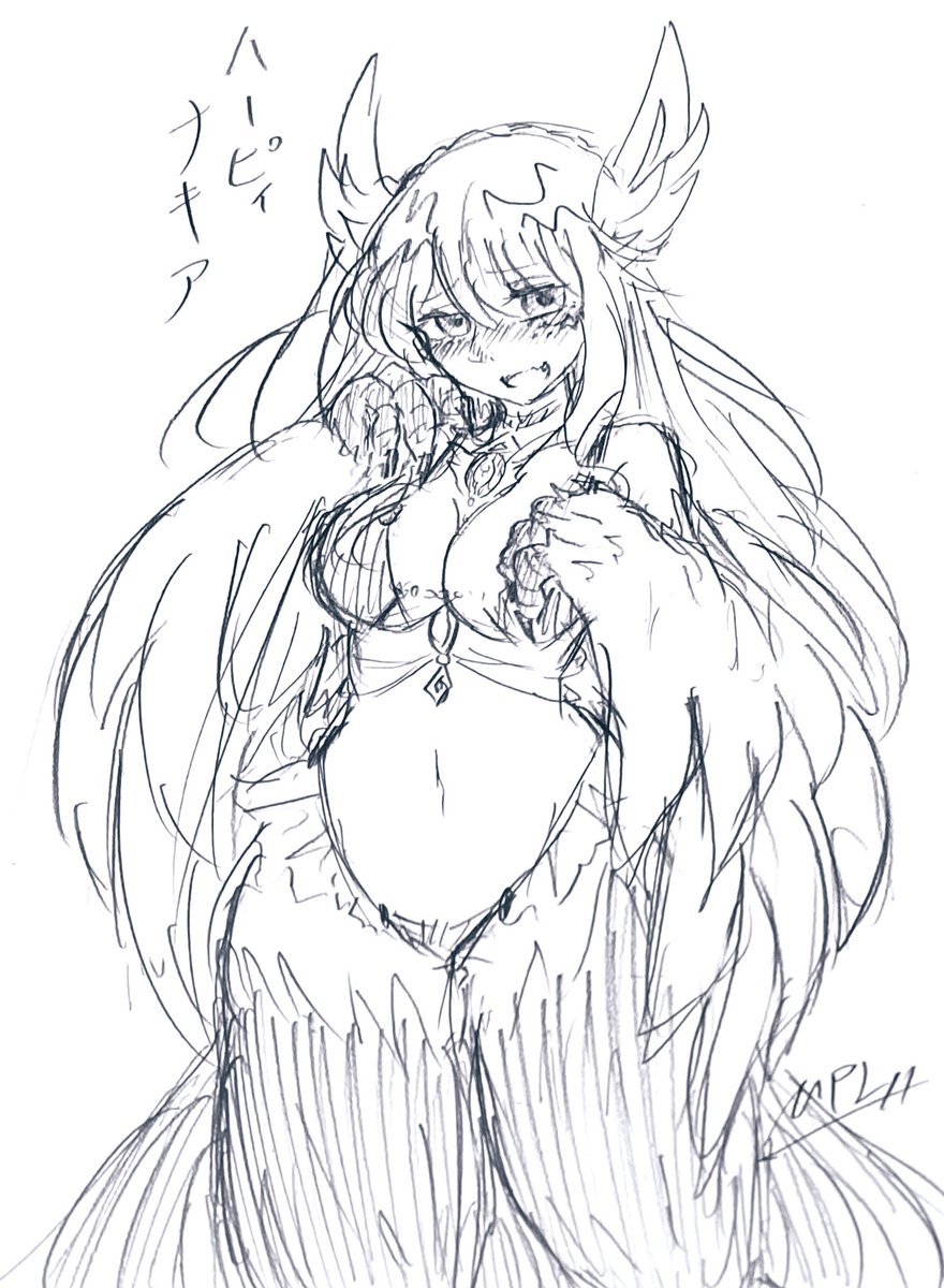 #西時の1日1絵【913日目】 今日はハーピィの姿をしたナキちゃん描いた 何となくだがアレ聴いたらヤンデレ顔が似合うなって思ってヤンデレ顔にしました🕊️ #絵描きさんと繫がりたい #イン沙汰グラム