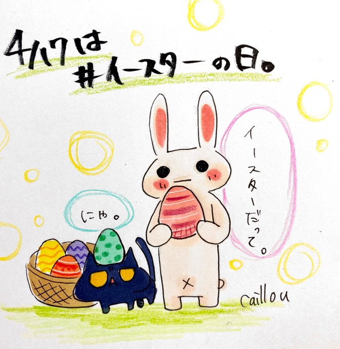 今日は #イースターの日 って聞いて急いで描いてきたよ🥚 たまーごまごまご(﹡ˆںˆ﹡) #イースター2022 #Easter #HappyEaster #むぎゅまるズ #イラスト #みんなで楽しむTwitter展覧会