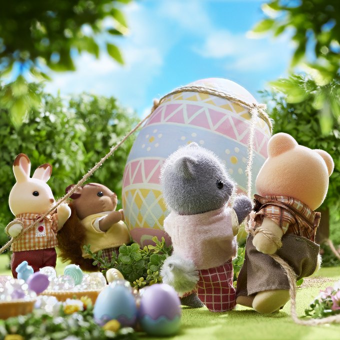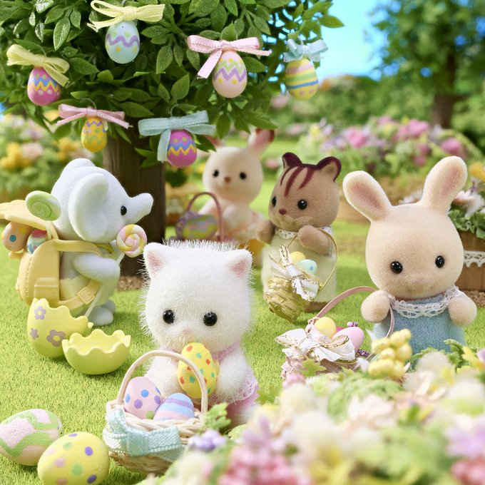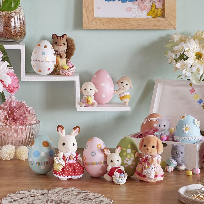 ハッピーイースター! 赤ちゃんたちはおめかしして準備万端✨ 「たまごさんもおめかししないとね!」 みんなでかわいく飾りつけです🎀 準備が出来たら、みんなでイースターを楽しみましょう♪ #シルバニアファミリー #シルバニア #イースター #たまご #イースターエッグ #シルバニア赤ちゃん