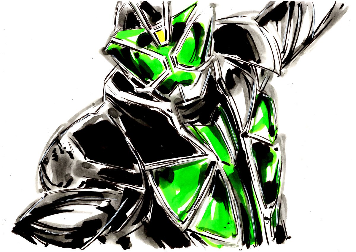 #仮面ライダーウィザード 放送開始10周年! 特撮業界に入るきっかけは、仮面ライダーを造形していたエキスプロでアルバイトしたことから始まります。そして、特撮スタッフデビューは「ウルトラマンVS仮面ライダー」でしたw 時間ができたら、緑の人と白い人も描きます😊 #ウィザード10周年