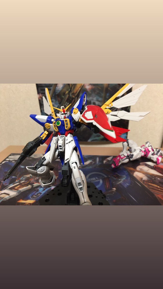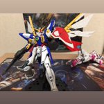 やっとやっと完成ぁ😅 ながかった…。 羽修正…。 嫁様に手伝ってもらって助かった🎵 二人の作品ってことやな( *´艸`) #ウィングガンダム #ガンプラ好きな人と繋がりたい #ガンプラの画像を貼るとRTされると聞いて